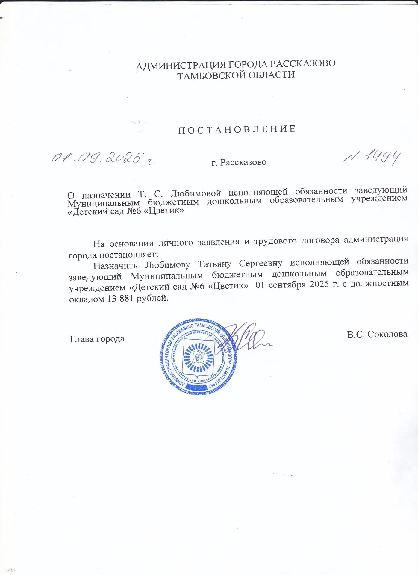 Постановление о назначении руководителя №119 от 01.02.2021г.